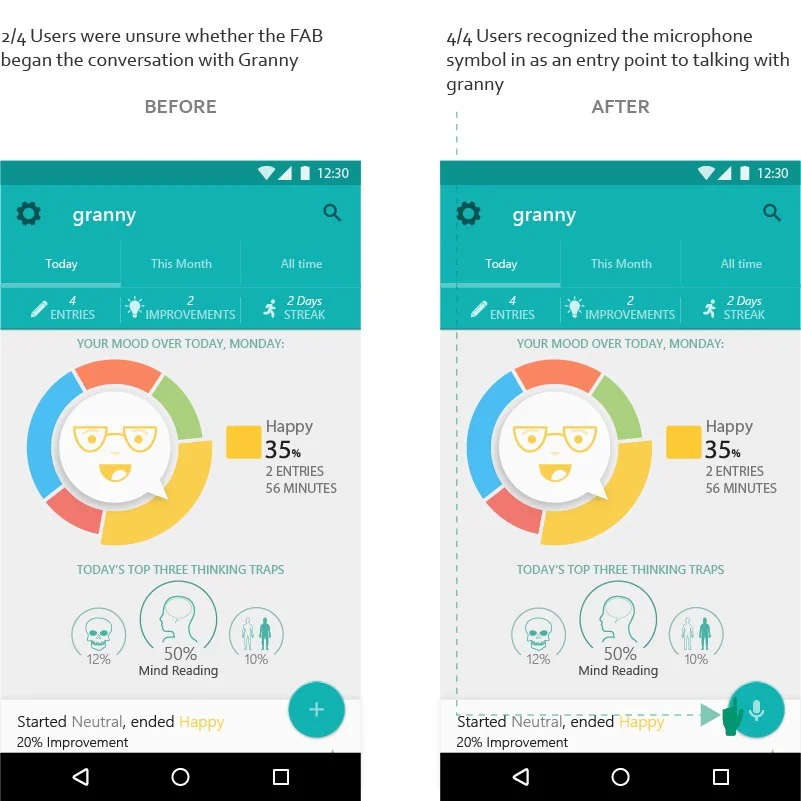 Pain Point 1: Users had difficulty associating the plus button to talking with Granny